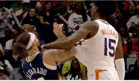 两人互殴被驱逐!太阳三杀3人20+鹈鹕 布克20分引7人上双
