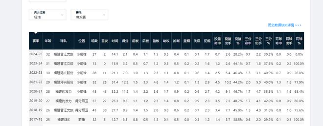 CBA24-25赛季,黄毅超场均仅能为球队贡献2.1分1.5篮板,投篮命中率低至28.2%。