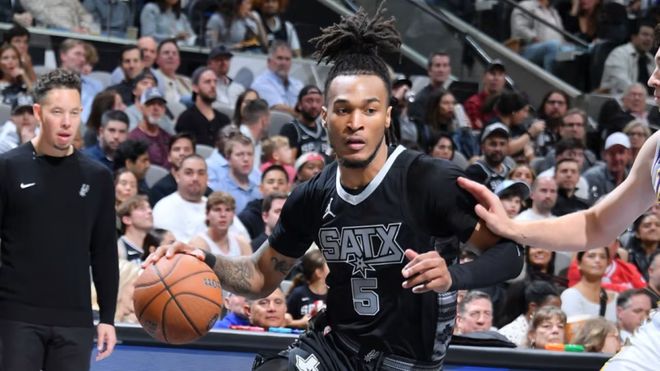 - 2025年12月09日 马刺7人上双险胜鹈鹕 哈珀准绝杀 奎因空砍新高33分+10板10助